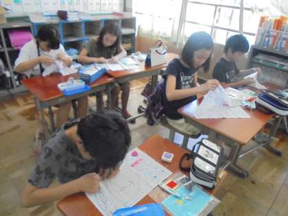 裁縫の学習では,なみ縫いや本返し縫いの練習をしました。玉止め,玉結びができるようになりました。