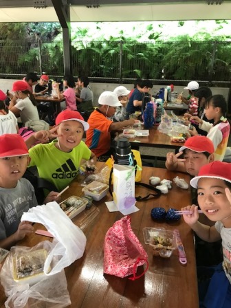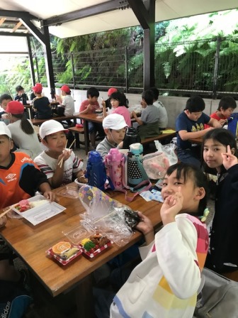 みんなでおいしくお弁当をいただいています。