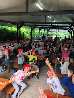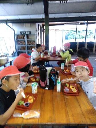 朝食タイムです。今日はこの後,楽しみにしている磯観察です。しっかり食べて元気に活動します!