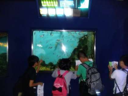 グループに分かれて,いろいろな魚を観察しました。