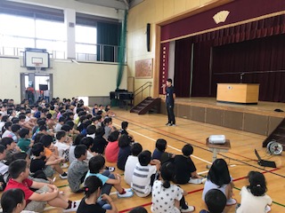 昨日の地震で安全主任の先生からは,これから3日間は強い余震があるかもしれないので十分に注意すること。校長先生からは,子どもたちの心をケアするお話がありました。