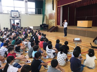 児童朝会では,全校合唱を歌い,また心をひとつにみんなで頑張ることを誓いました。