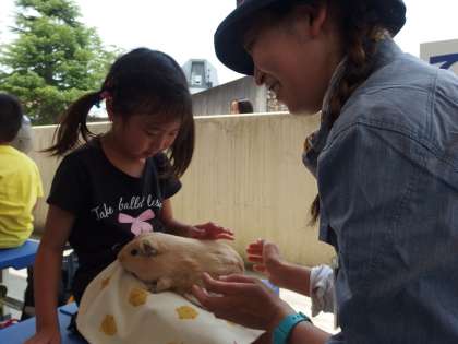 おそるおそる膝に乗せた子どもたちも,膝の上に乗せるとみんな笑顔でした。