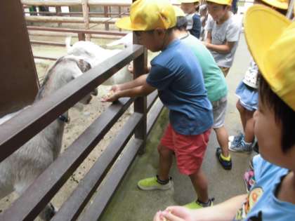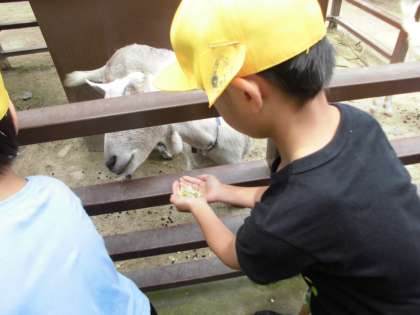 やぎやひつじにえさをあげるときのポイントを教えてもらって,それぞれ手にえさをもらって,実際にあげました。