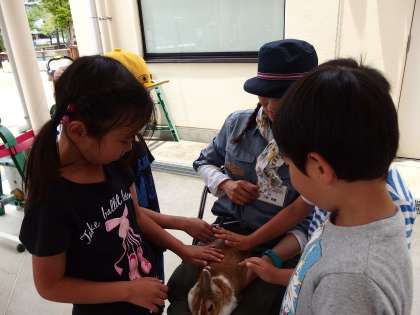 テンジクネズミの後は,ウサギも触りました。テンジクネズミとの違いを教えてもらいながら,触っていました。