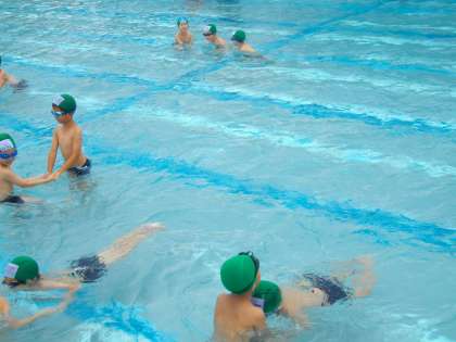 水に顔をつけるのが苦手な子どもも少しずつ慣れていけるように頑張っています。