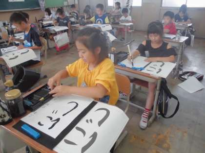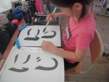 3年から新しく始まった書写。学習を重ねるごとに,筆にどれくらい力をかけてかいたらよいのかコツを掴めてきた子が多く見られました。一人ひとりが静かに文字と向き合い,「にじ」をかいています。今回かいた「にじ」は教室の後ろに掲示していますので,個人懇談会の際にご覧いただければと思います。