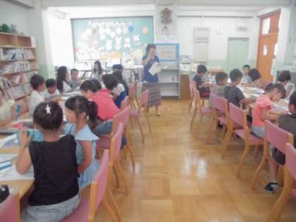 国語の学習で,百科事典の使い方について学習しました。司書教員の堀本先生から辞書の使い方の説明をうけたあと,2人1組で辞書を使い,クイズに挑戦しました。みんな真剣な表情でページをめくっていました。