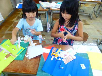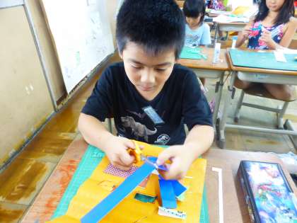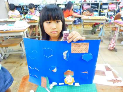 自分で考えた窓,そしてその窓から出てくるものを作りました。自分たちのまちをつくっていきます。