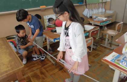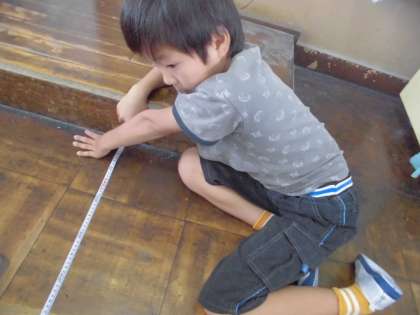 算数の学習で,まきじゃくの使い方やまきじゃくを使うことのよさについて考えました。まきじゃくで,教室のたてや横の長さをはかったり,丸いものをはかったりして,「長いものや丸いものはじょうぎじゃなくてまきじゃくではかるとはかりやすい!」と子どもたちはたくさんの気づきをえていました。