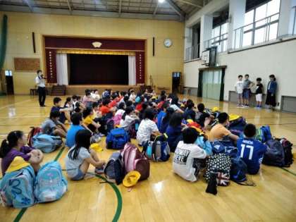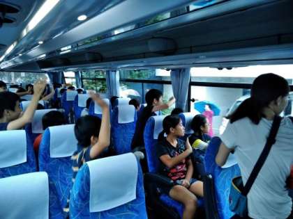 6年生は、今日から1泊2日で、名古屋方面に出発しました。あいにくの雨の朝となりましたが、元気な顔がそろいました。