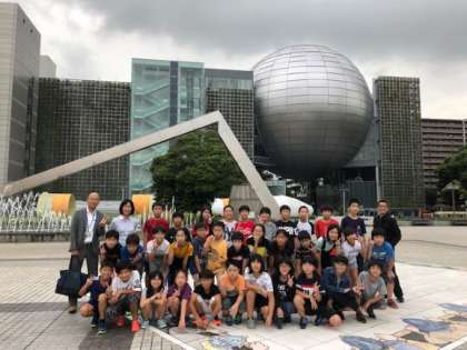 名古屋市科学館の前で、クラスごとに集合写真を撮りました。