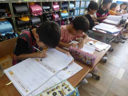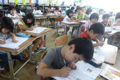 漢字の学習ノートの「上」を終えて,「下」に進んでいます。毎日,新出漢字を学習します。