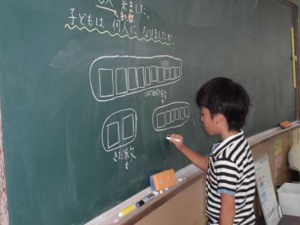 どんな式になるかな?図にかいて考えています。