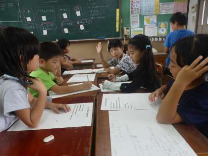 町たんけんに向けて,学年でグループに分かれて取り組んでいます。今日は,お店でインタビューをする内容や質問する順番を決めました。