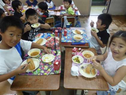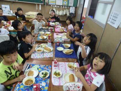 給食は「ボルシチ」でした。たくさんの野菜と牛肉がトマトソースで柔らかく煮込んであります。完食でした。