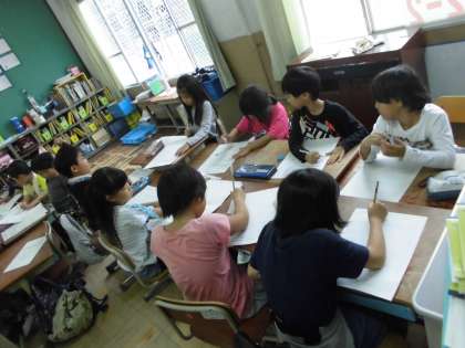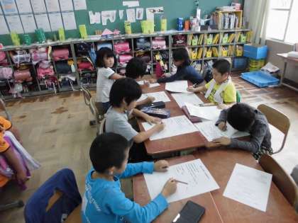 町たんけんでお店の方にインタビューする内容や順番をグループに分かれて話し合いました。