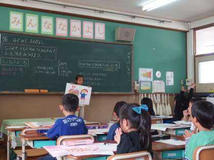 今までは,見合って鑑賞を伝え合っていましたが,今回は一人ずつ前に出て,がんばったところを,話す場を作りました。みんな恥ずかしそうにしながらも,がんばったところを自信をもって話していました。