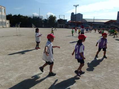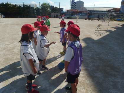 チームの発表をしたり,ルールの説明を聞いたりしてゲームをしてみました。