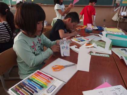 さらに,切って飛び出すしかけを作っていた子もいました。動物や家など,いろいろなものができました。可愛かったです。