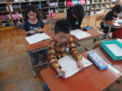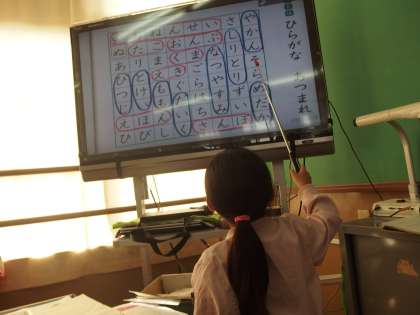 ひらがながランダムに書かれている表から,いろいろな言葉を探しました。身を乗り出して探す子もいました。