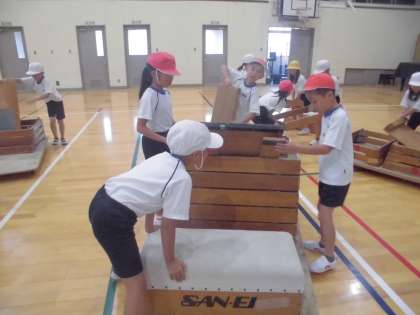今週から跳び箱が始まりました。準備の段階から班で協力しててきぱきと動く3年生。とても素晴らしいです。3年生からは段数にくわえ,台上前転など難しい技に挑戦していきます。踏切・着手・着地を大切にしながら跳び箱に挑戦する子どもたちの姿が見られます。