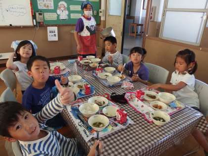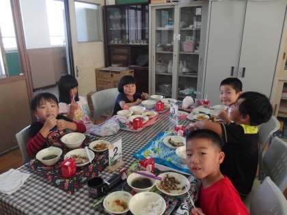 顔を合わせて食べるとおいしいですね。いわしの骨を取るのは難しかったけど,早光先生に教えてもらいながら,丁寧にいただきました。