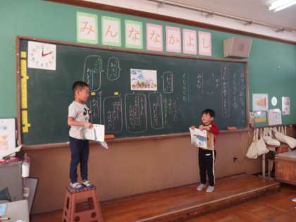 くじらぐも役と,子どもたち役に分かれて読みました。
