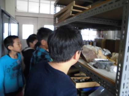 4年生の理科の学習では,これから理科室で実験する学習があります。はじめて理科室で実験道具を使い学習していきます。理科室を使うときのルールや安全に実験するための約束を確認し,準備室を見学しました。見たことない道具や器具,標本などがありました。