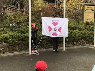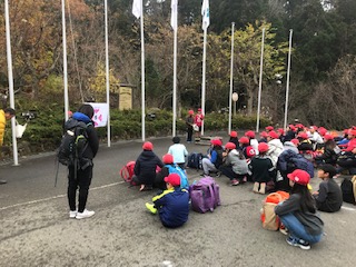 花背山の家の到着しました。朝の気温は,5,6度。少し肌寒いですが,みんな元気に入所式を行いました。