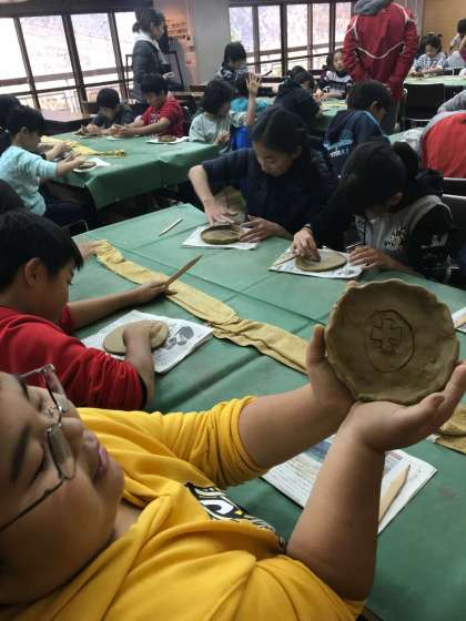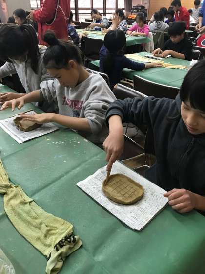 花背焼きの師匠に,作り方を教えていただき作りました。思い思いの形にしたり,心に残る言葉を刻んだりしました。