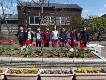 チューリップの前で写真を撮ったよ!!