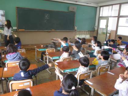 ひらがなの練習や,教科書で「あさ」のページで学習をしています。
