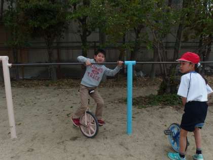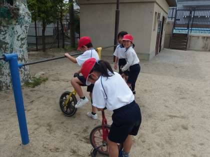 一輪車の乗り方も確認しました。