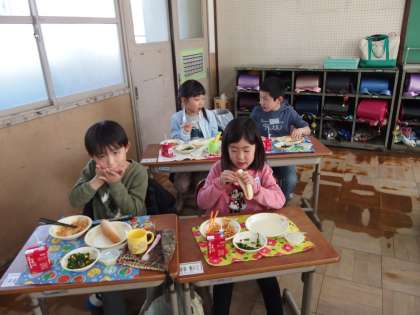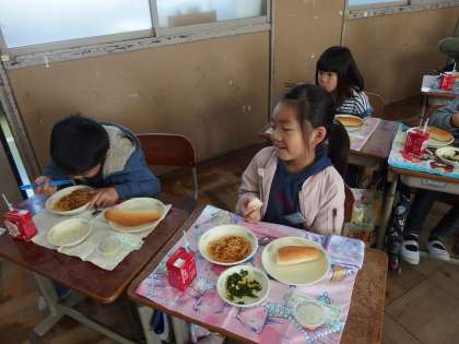 【2年生】楽しく給食を食べています