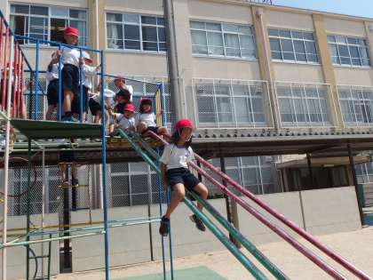 てつぼうをする前に,ゆうぐの練習もしています。