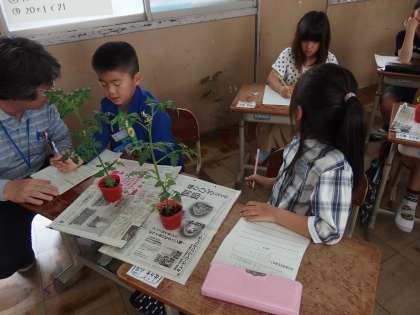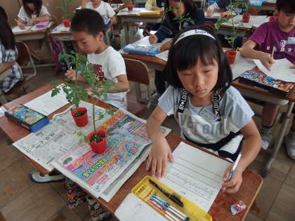 ミニトマトの苗を植える前に,ミニトマトさんに手紙を書きました。