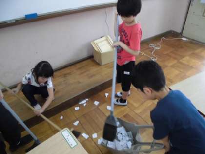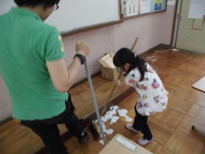 4くみの教室の掃除の仕方を,確認しました。ほうきを同じ方向に掃くのは難しいですが,頑張りました。