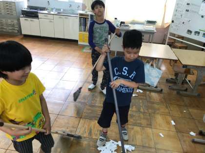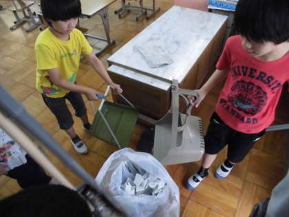 ちりとりで集めたごみは,ごみ箱に捨てます。