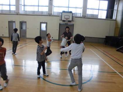 コートに入って,対戦します。人がいないところに打つと,決まりやすいです。