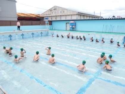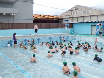 今日は,低水位だったので,ひざを曲げて,「あひるさんのだるまさんがころんだ」をしました。「だるまさんがころんだ」で,ぴたっと止まります。とっても楽しんで学習していました。