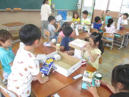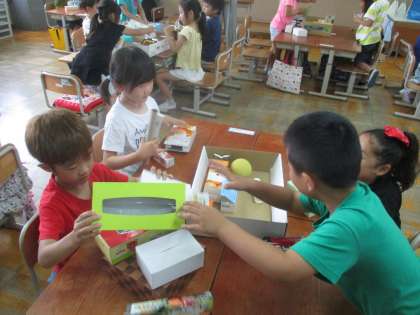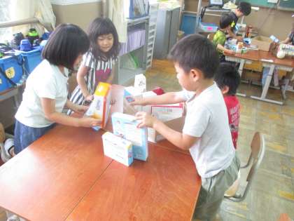 「いろいろなかたち」では,箱や積み木などを使って,色々な形について学習しました。