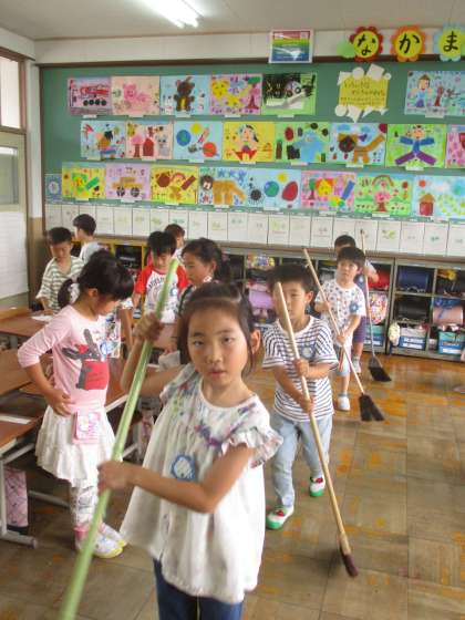 班に分かれてそれぞれのそうじをがんばっています!