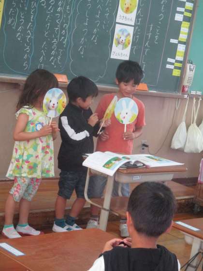 道徳では,それぞれの考えを発表したり,書いたりしています。ペープサートを使って,登場人物の気持ちを考えることもあります。