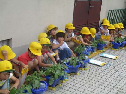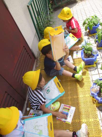 あさがおの観察をしました!葉っぱが増えてきて,かくのに苦戦している子たちもいます。でも,大きくなっていることにみんな喜んでいます!