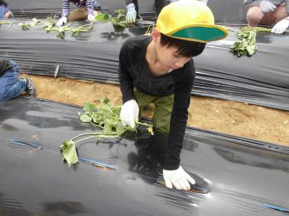 ふわふわの土の中でたくさんのさつまいもができますように。
