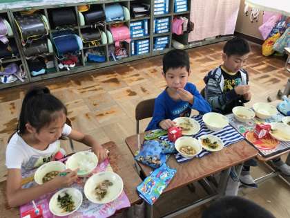 交流給食でも,「おかわりしたい!」とたくさん食べていました。交流学級の児童も,毎週あたたかく迎えてくれます。