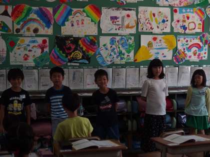 歌のテストをしました。みんなが前に出て,きれいな歌声で歌うことができました。