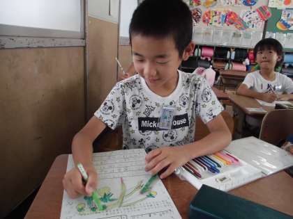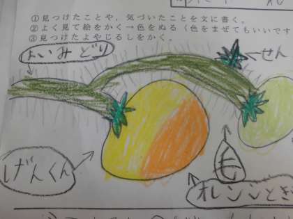 観察のあとは気付いたことやみたことを観察カードに書いています。思いがいっぱいです。早く大きくなってほしいな。