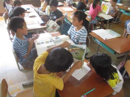 くちばしでは,ノートを一生懸命書いたり,ペア学習をしたりしています。